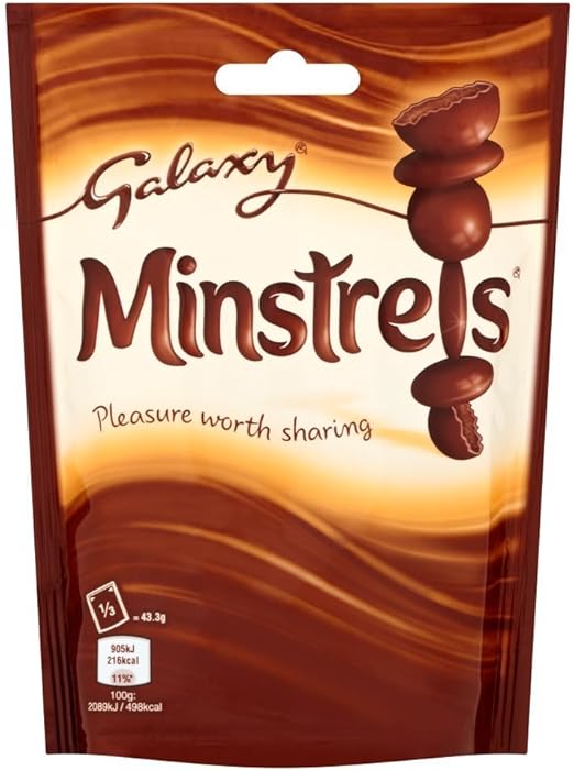 Galaxy minstrels are milk chocolate buttons with a hard glazed shell sold in several countries including the uk, republic of ireland, south africa, kenya, cyprus, malta, canada and spain.